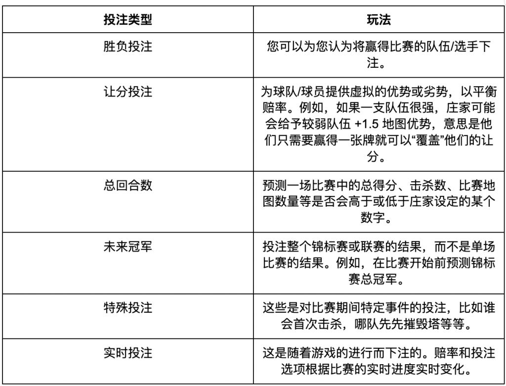 电子竞技允许您对各种赛事进行投注。我们在上面提到了真钱投注,但投注者可以进行许多不同类型的投注,因为电子竞技博彩不仅仅是金钱,投注者必须选择游戏或游戏类型。