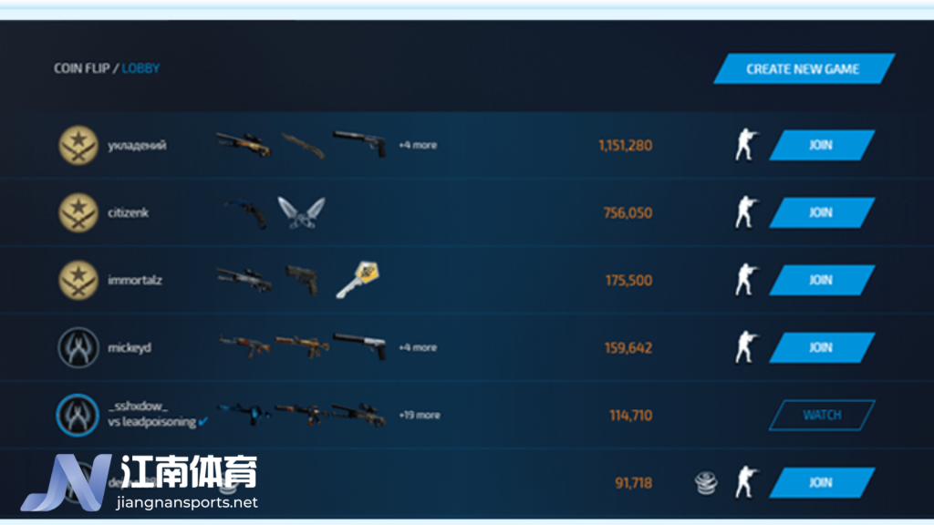 投注者可以在江南体育购买、出售和交易皮肤。当投注者在江南发布自己的物品时,网站会向投注者赠送 1 美元。如果投注者获胜,他或她会收到存入的物品和另一笔奖金,但如果投注者输了,该物品将被没收。